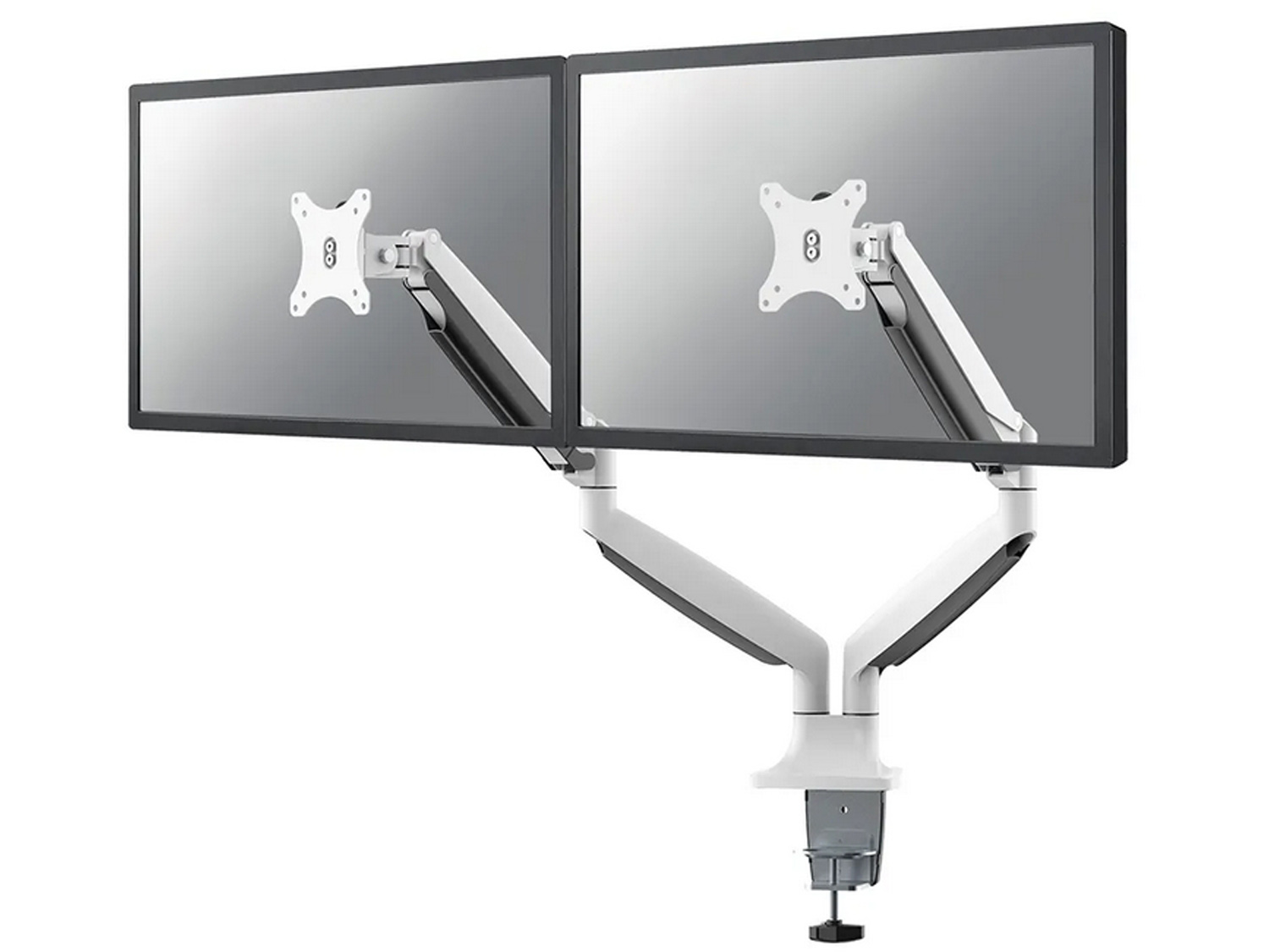 Neomounts NM-D750DWHITE има три точки на завъртане и е подходящ за екрани с диагонал до 32“ (82 см). Капацитетът на теглото на този продукт е 9 kg за всеки екран. Настолната стойка е подходяща за екрани, които отговарят на модела на отворите VESA 75x75 или 100x100 mm. Различните модели отвори могат да бъдат покрити с помощта на адаптерни плочи Neomounts VESA.