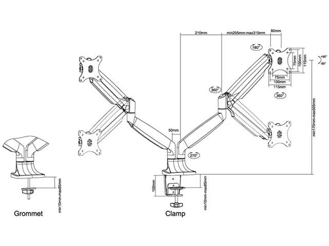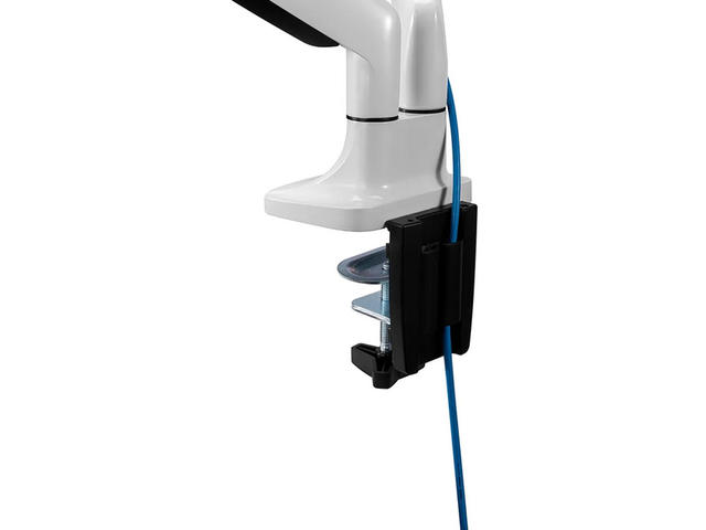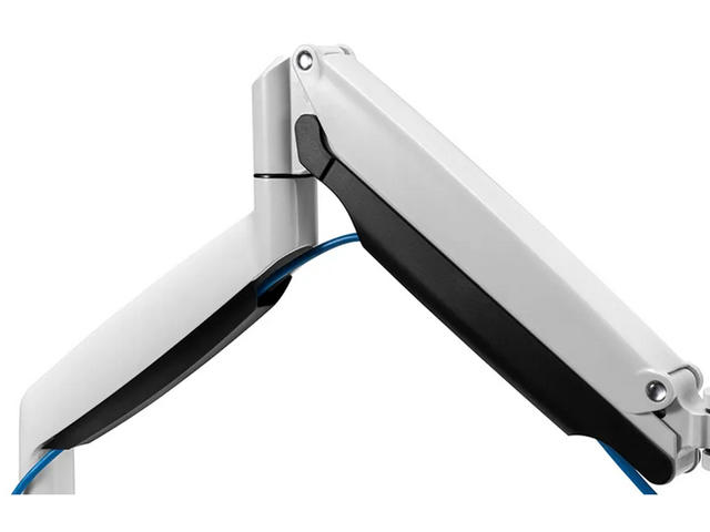 Монтажът се регулира лесно и индивидуално на височина от 17 до 51 см с помощта на газова пружина. Дълбочината се регулира от 0 до 61 см. Уникално управление на кабелите скрива и насочва кабелите от стойката към плоския екран. Скрийте кабелите си, за да запазите работното място приятно и подредено.