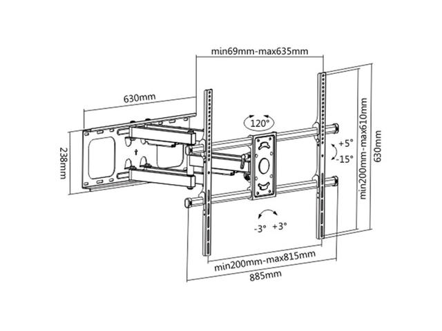 - Разстояние от стената 635мм, позволява дисплея да се завърта до 60° наляво/надясно