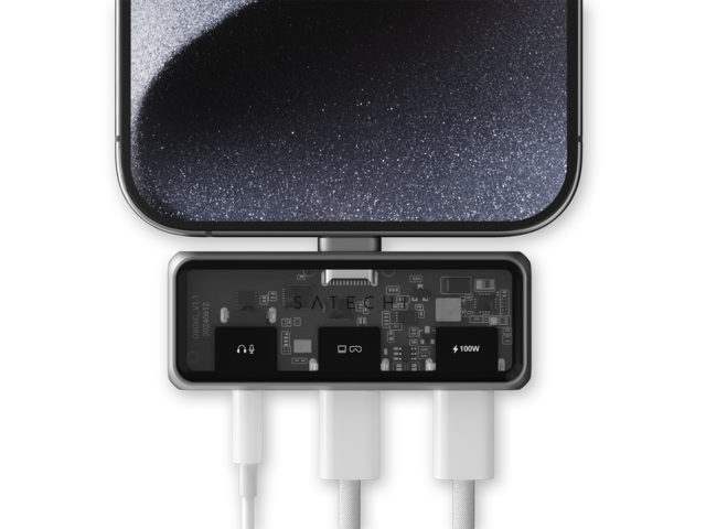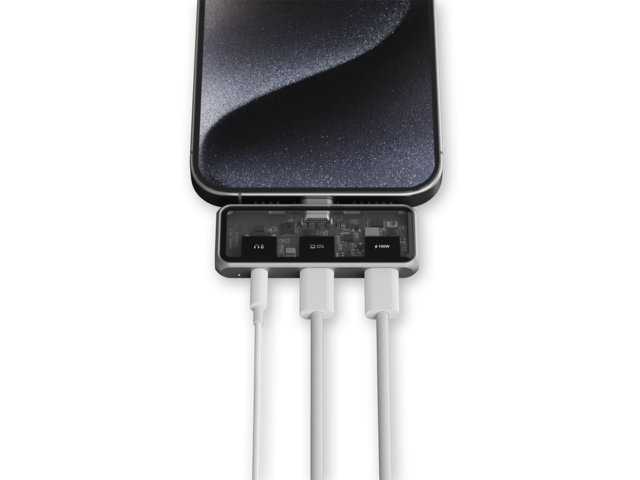 - Mobile XR Hub с аудио поддържа безпроблемна съвместимост с най-добрите XR очила, светкавично бърз трансфер на данни и първокласен звук с вградена функция за микрофон.