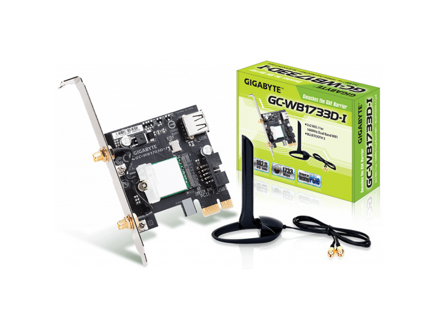 Безжичен PCI Express адаптер Gigabyte GC-WB1733D-I, 2x2 802.11ac 160MHz, Bluetooth 5.0