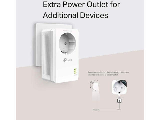 Трудно ли е да включите устройствата си? TL-PA7017P има интегриран захранващ контакт за променлив ток. Вашият адаптер вече може да се използва като традиционен електрически контакт. Просто включете смарт телевизора или гейминг конзолата в адаптера и се наслаждавайте.